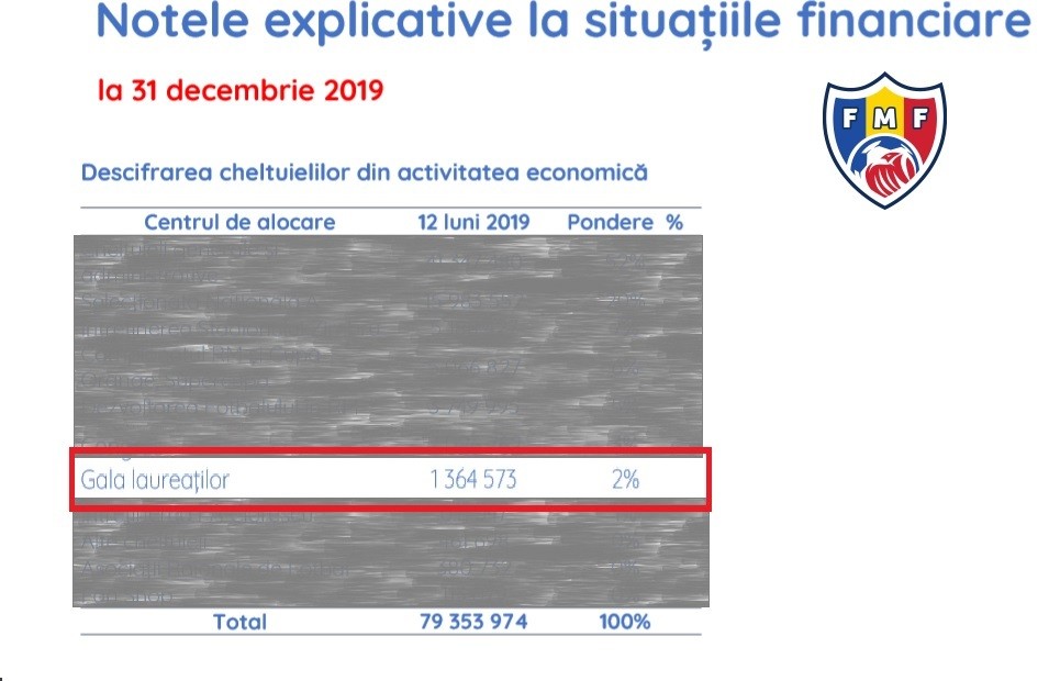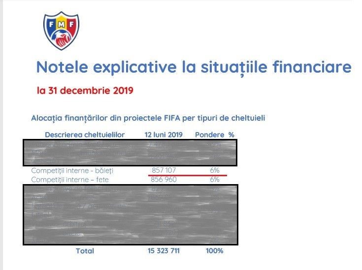 Итак, в 2019 году, из финансовых средств по всего лишь некоторым программам UEFA (в этом конкретном документе указана общая сумма в 15 млн. 323 тысячи 711 леев) было израсходовано на: