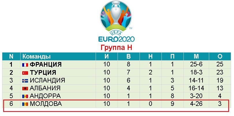 Итак, в 2019 году сборная Молдовы провела 10 матчей в Отборочном цикле к ЧЕ-2020. Итог, к сожалению, печален: