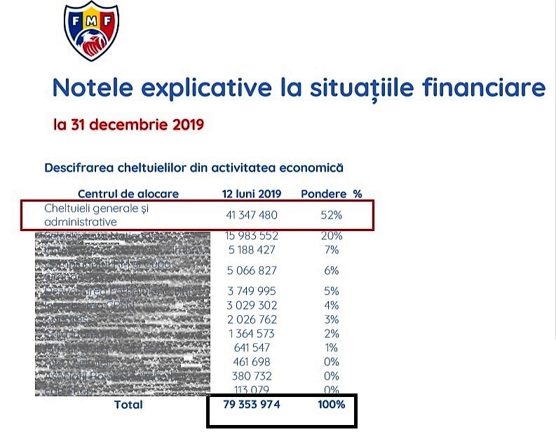 52% расходов FMF – это общие и административные расходы. Сумма умопомрачительная – более 41 миллиона леев в год. Это содержание аппарата, зарплаты и сохранение структуры FMF.