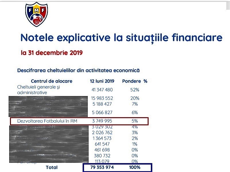 Итак, на развитие футбола (пока ещё загадочного) расходы составили 3 749 995 млн. леев, и это всего 5 процентов из общих трат.?‍♂️ В этом смысле, сравнение более чем важно, и мы просто напомним: на общие и административные расходы (аппарат FMF, зарплаты, поддержание структуры FMF) ежегодно тратится более 41 млн. леев.